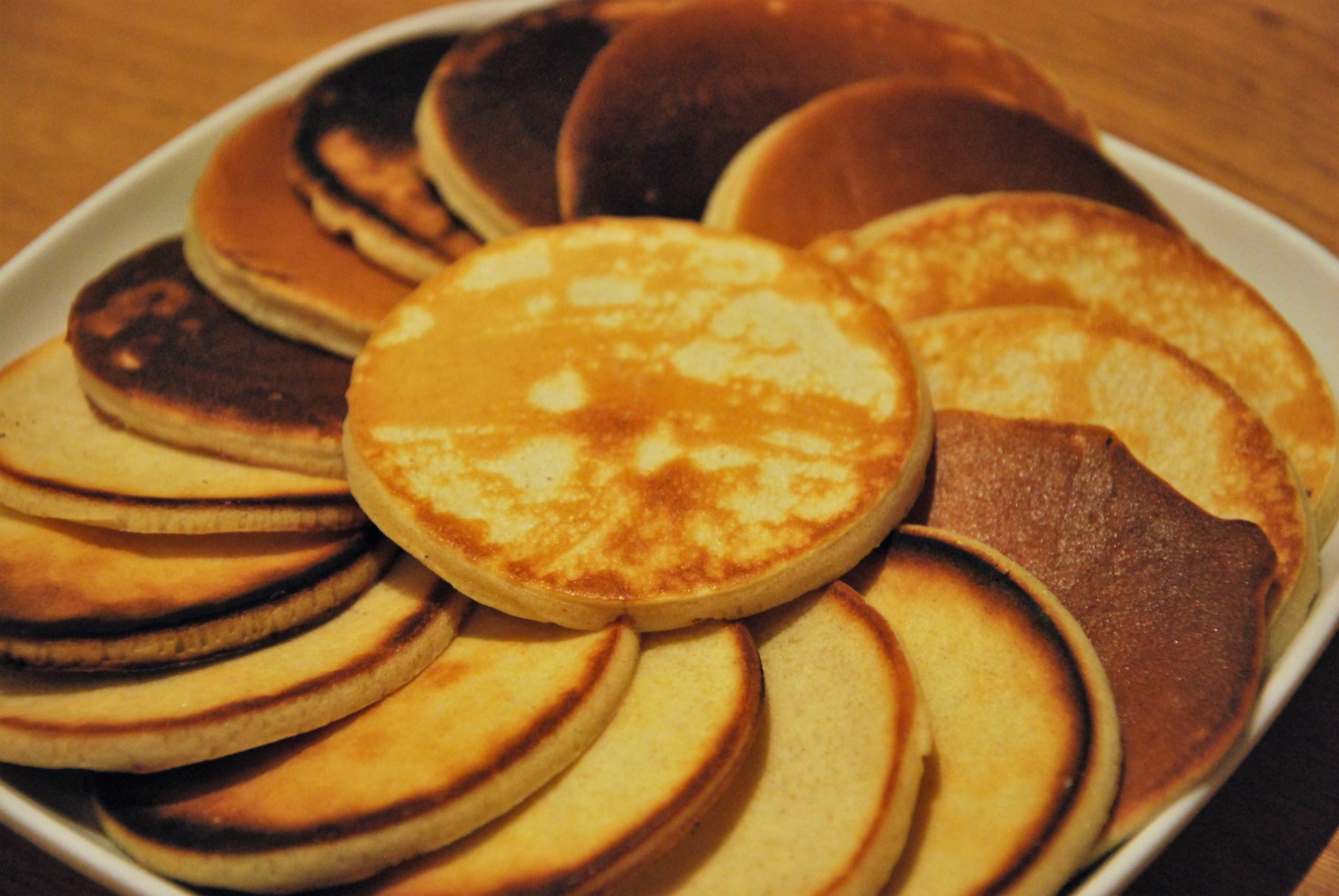 - Dans une poêle chaude et légèrement huilée, faire cuire comme des crêpes, mais en les faisant plus petites. Réserver au chaud et déguster.
